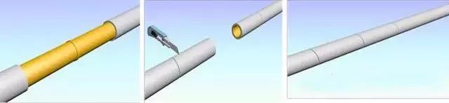 用割刀在銅管前端將襯塑部分隔開并與銅管隔離,然后用手和鉗子將襯塑部分將銅管前端10cm剝離,杜絕用小刀剝離,造成銅管劃痕。