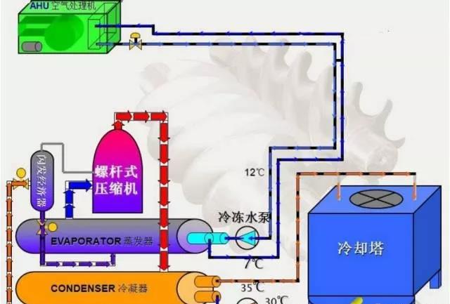 2、制冷劑:在制冷裝置中不斷完成循環的工作物質。常用制冷劑:氨、氟利昂(R22、R134A、R407C、R410A)、水。